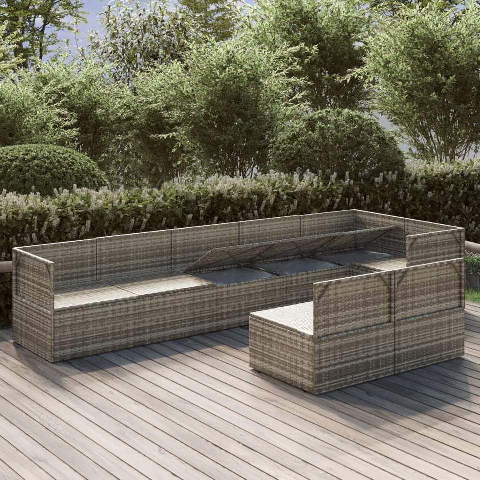 Set da salotto con Patio in Poly Rattan grigio 8 pezzi con cuscini Set da giardino