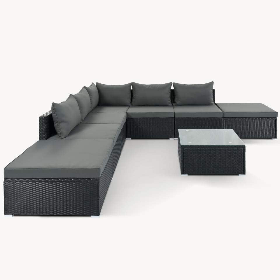 Set di mobili da giardino da giardino divano in vimini da 8 pezzi con cuscini singoli grigi abbinabili e vimini neri