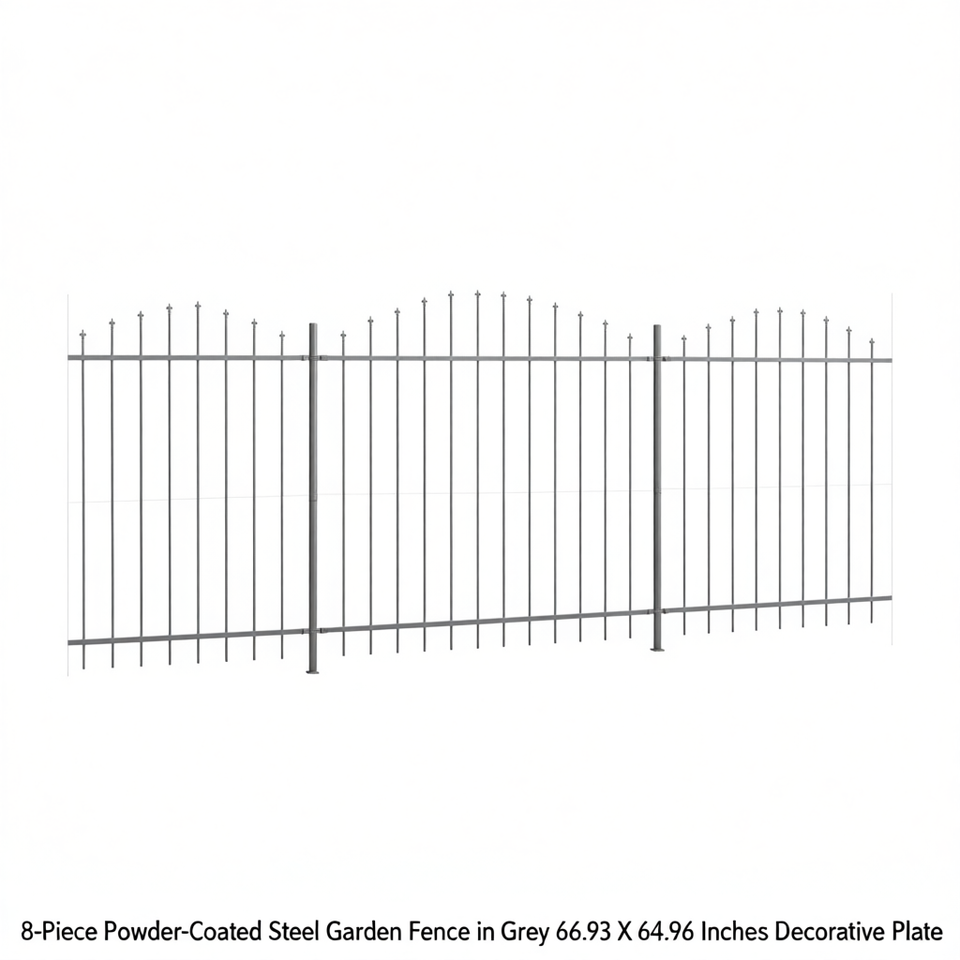 Set di 8 Recinzioni da Giardino in Acciaio Verniciato a Polvere Grigio 66,93 X 64,96 Pollici con Piastra Decorativa