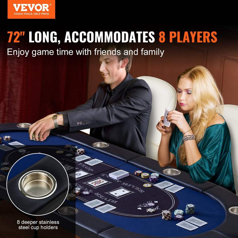 8 Player Blue 72\" Oval Casino Leisure Table Portable Folding Card Board Game Table Padded Rails Stainless Steel Cup Mahjong