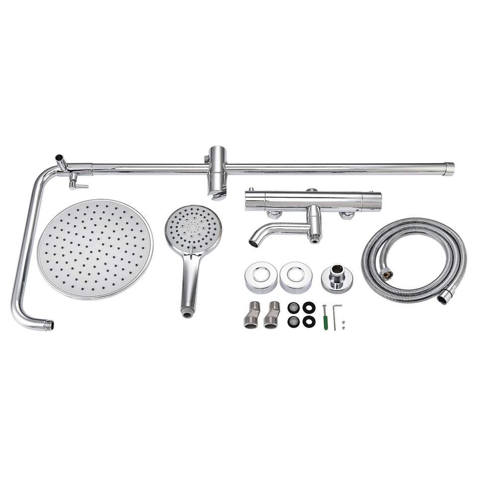 Set Doccia Termostatico a Pioggia con Spruzzatore Manuale Cromato Lucido da 8\", 3 Funzioni, Barra Scorrevole Regolabile in Altezza