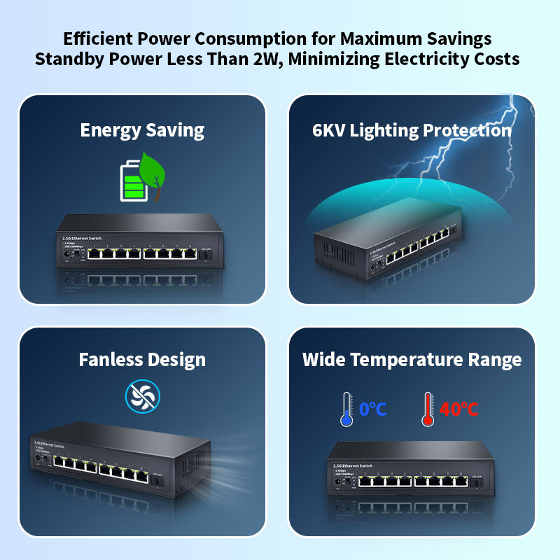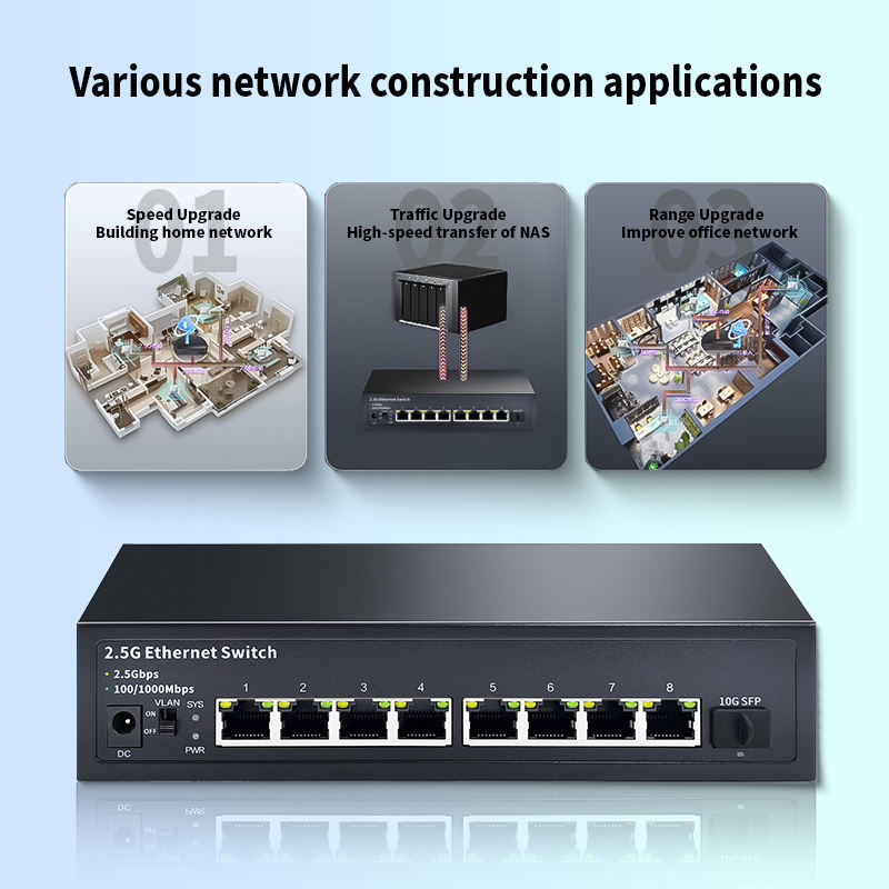 Interruttore di rete Desktop non gestito a 8 porte RJ45 2.5 Gb/s con QoS 10G capacità di Switch ethernet Software Hardware