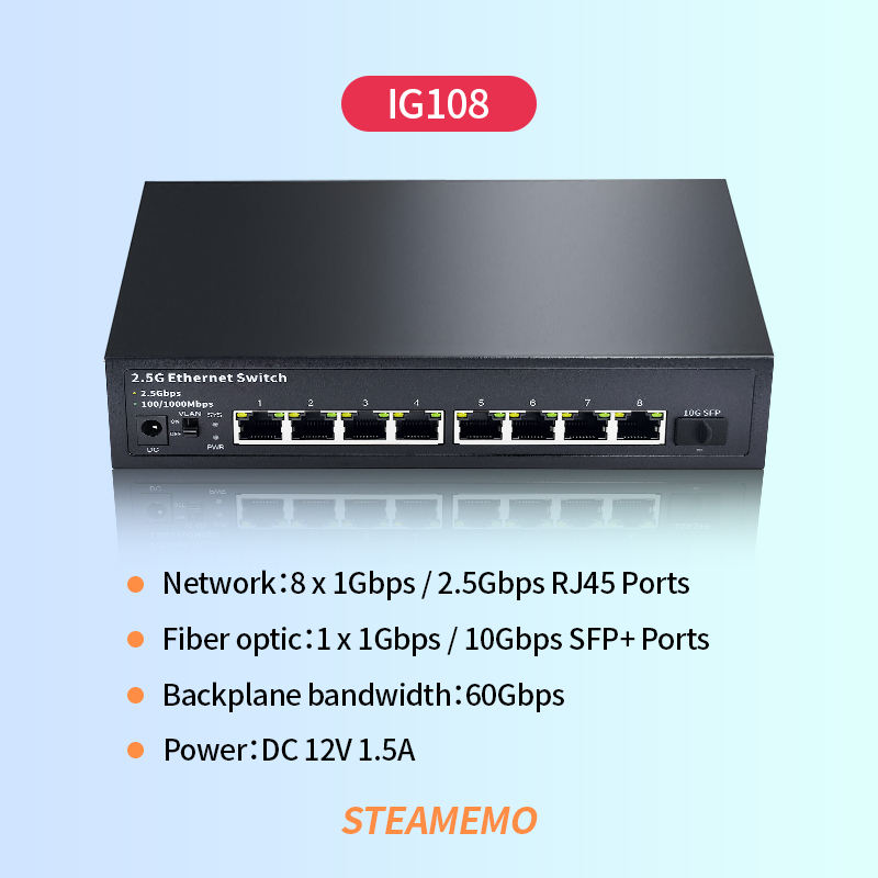 8 porte RJ45 da 2,5 Gbps + 1 SFP+ da 10 G