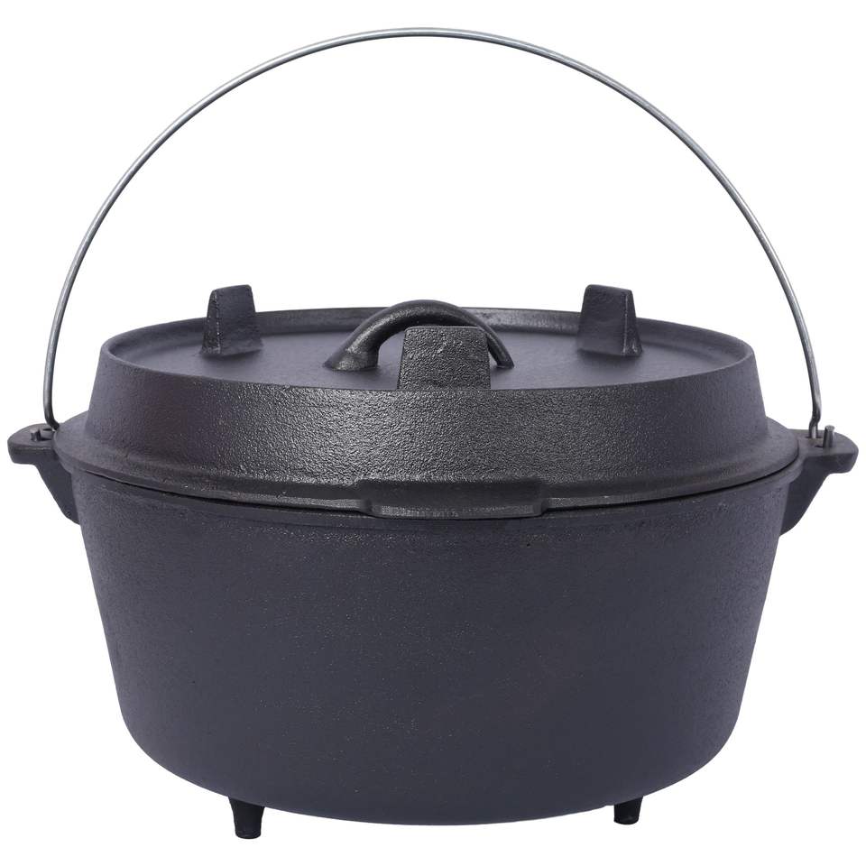 8 quarti Pre-stagionato in ghisa da forno olandese da campeggio all'aperto pentola profonda con coperchio in padella Base per la cottura del barbecue