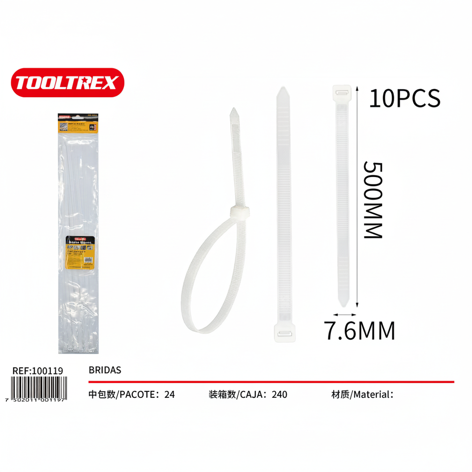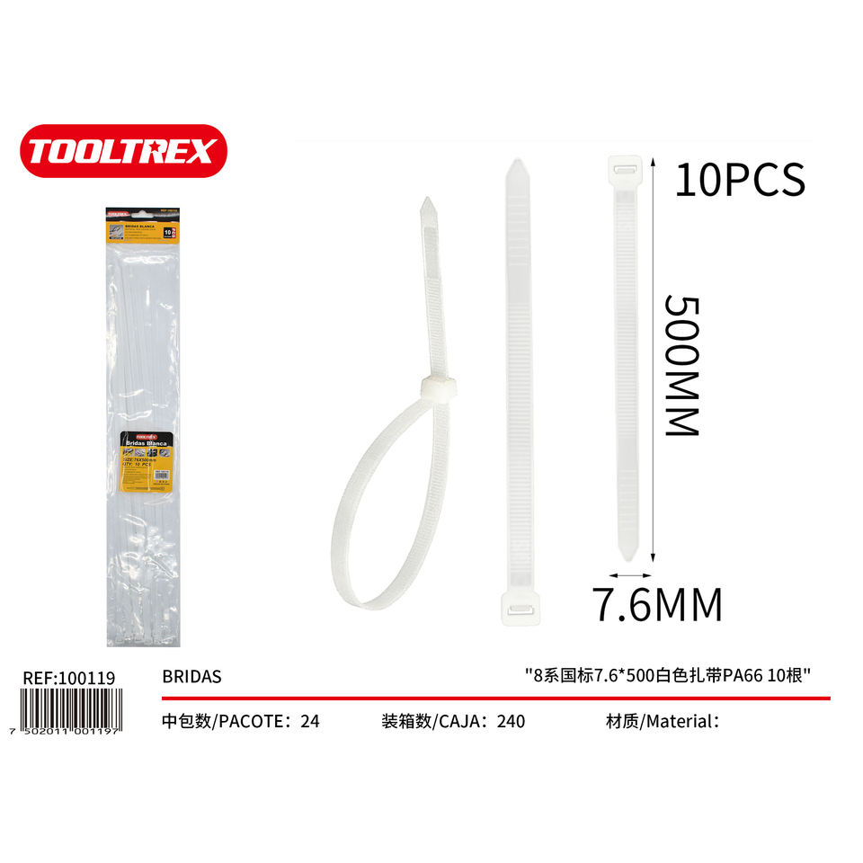 8 Series Eco-Friendly Cable Ties 7.6*500 White PA66 Nylon Zip Ties 10 Pieces 400mm Length