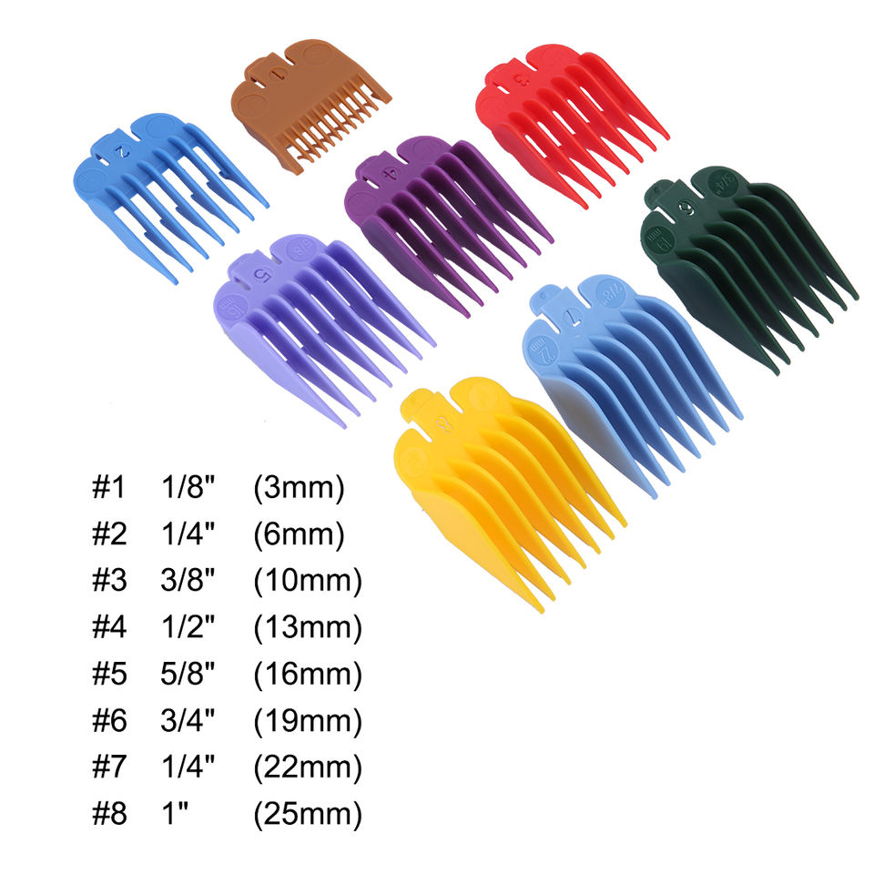 Set di 8 Pettini Guida in Plastica per Tagliacapelli, Accessorio per Taglio Capelli, Pettini Limitatori per Trimmer