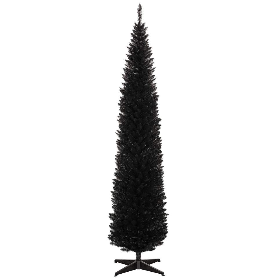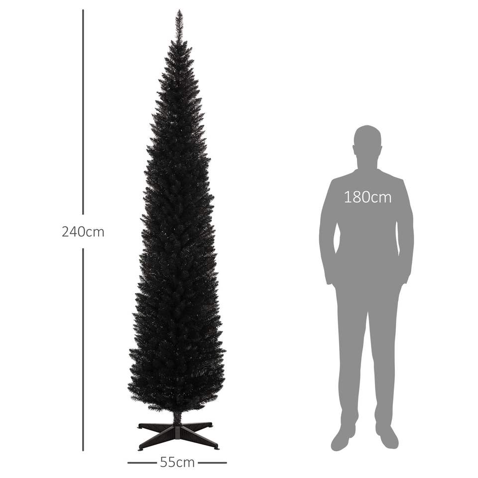 Albero di Natale Sottile con 618 Punte Realistiche, Albero di Natale Artificiale a Matita con Supporto in Plastica, Decorazioni Natalizie Nere