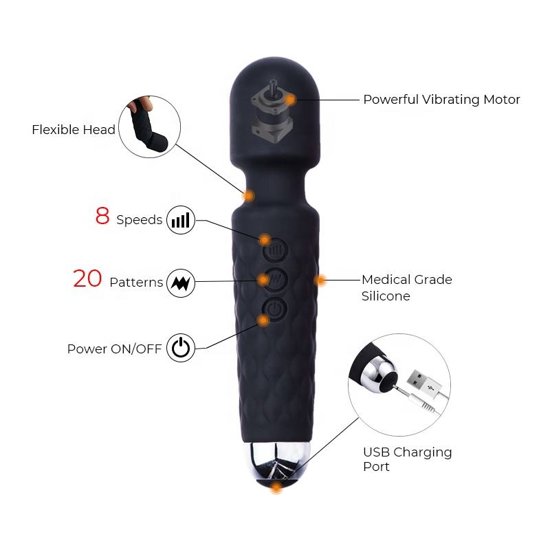 Massaggiatore Personale in Silicone per Corpo, Collo e Spalle con 8 Velocità e 20 Modalità per Uomini e Donne