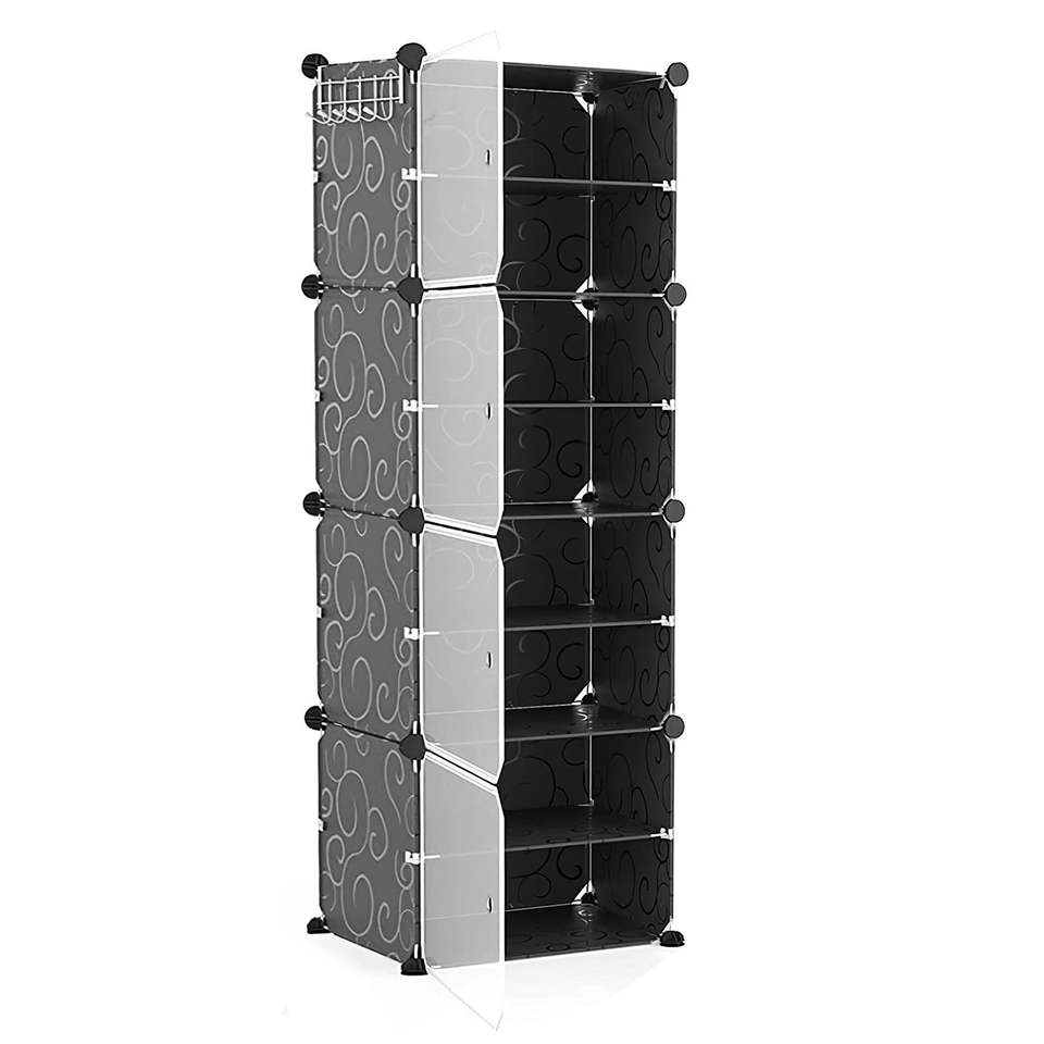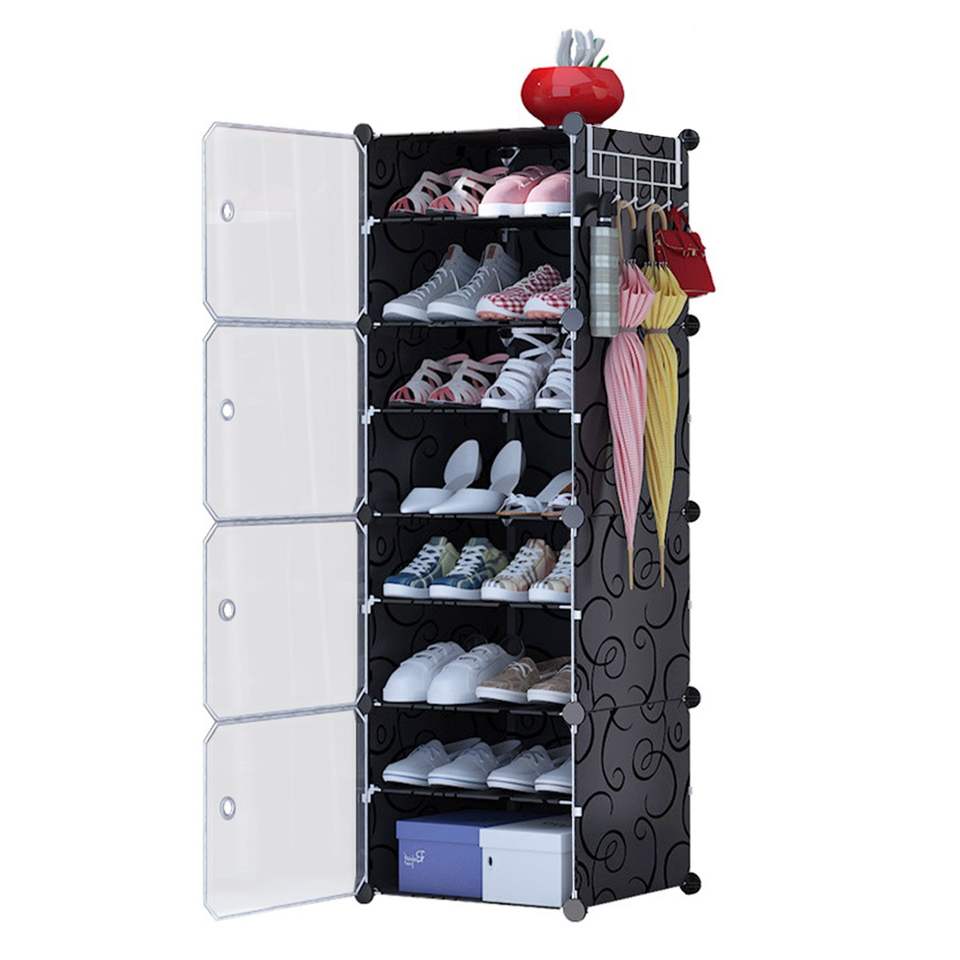 Scarpiera a 8 livelli autoportante in plastica con ante trasparenti, scaffale impilabile, armadietto a torre da appendere sopra la porta