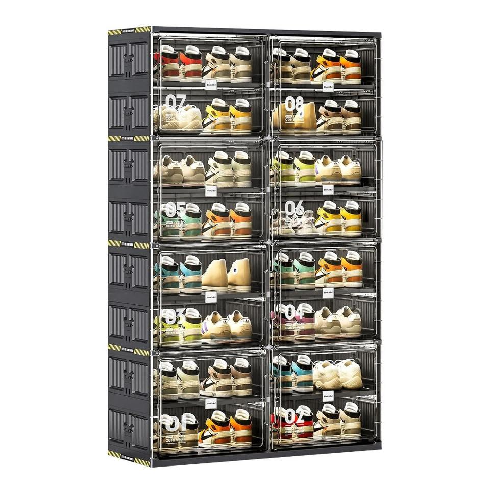 Organizzatore per scarpe impilabile a 8 livelli, armadio pieghevole pieghevole con porte magnetiche trasparenti per 32 paia, plastica resistente, Bl