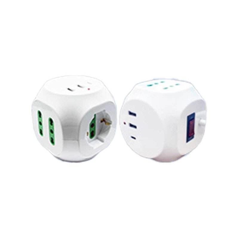 Multipresa a cubo a 8 vie con 4 prese da 10/16A, 1 presa Schuko a doppio pin, 2 porte USB-C da 3.0, interruttore per spina da 10A, cavo bianco da 1.5m