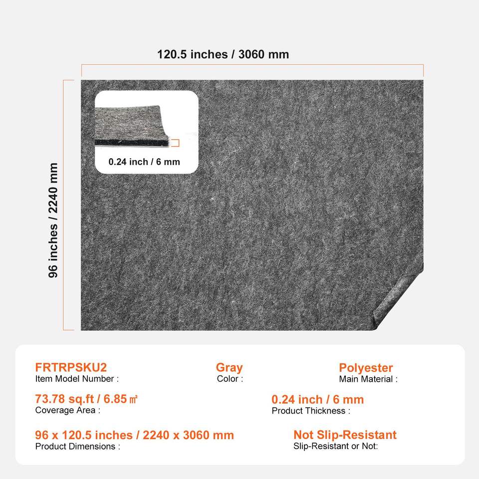 Not Non-Slip 0.24" Thick-7-8 m2