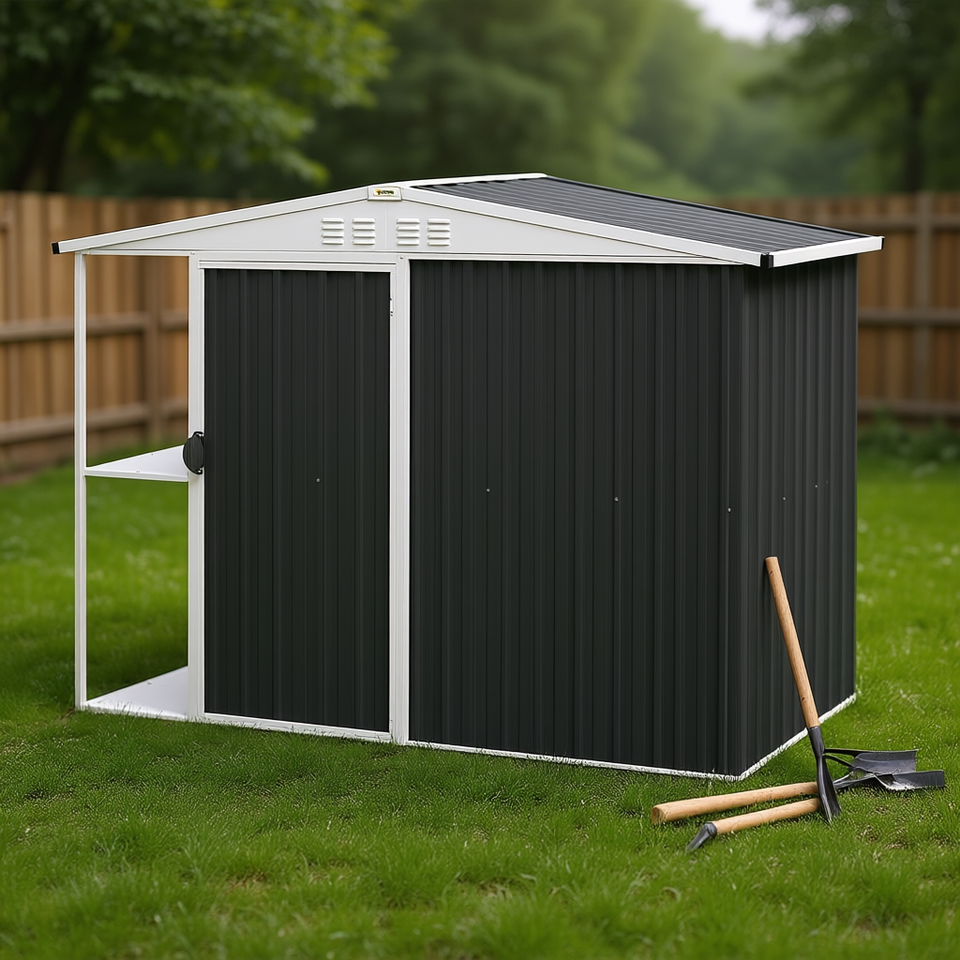 Casetta da Giardino in Metallo Verniciato a Polvere 8x4 piedi Grigio Scuro con Porta Lucchettabile per Esterni e Giardino