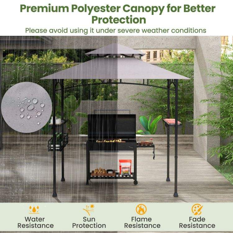 Gazebo per Barbecue da Esterno 8 X 5 FT con 2 Ripiani Laterali e 20 Ganci, Tettoia e Pergola