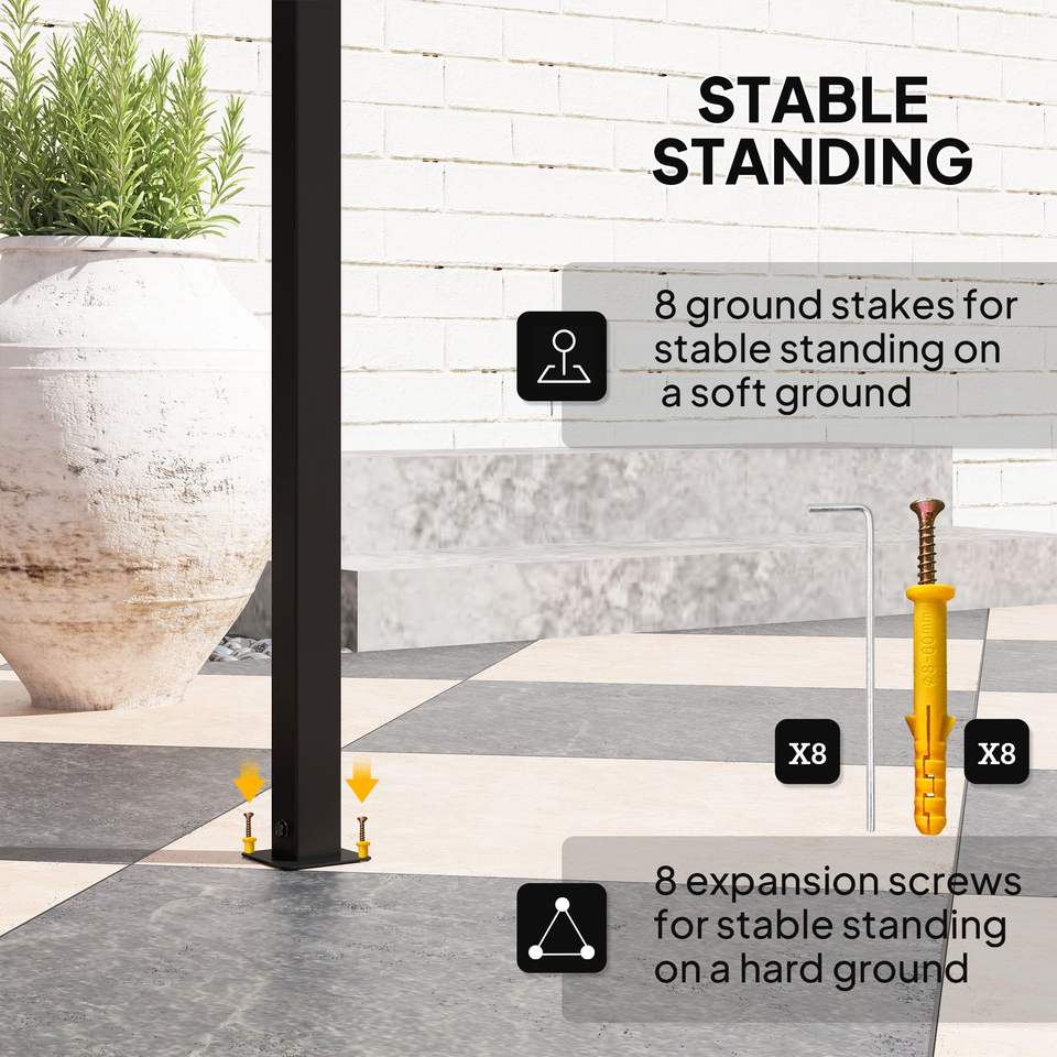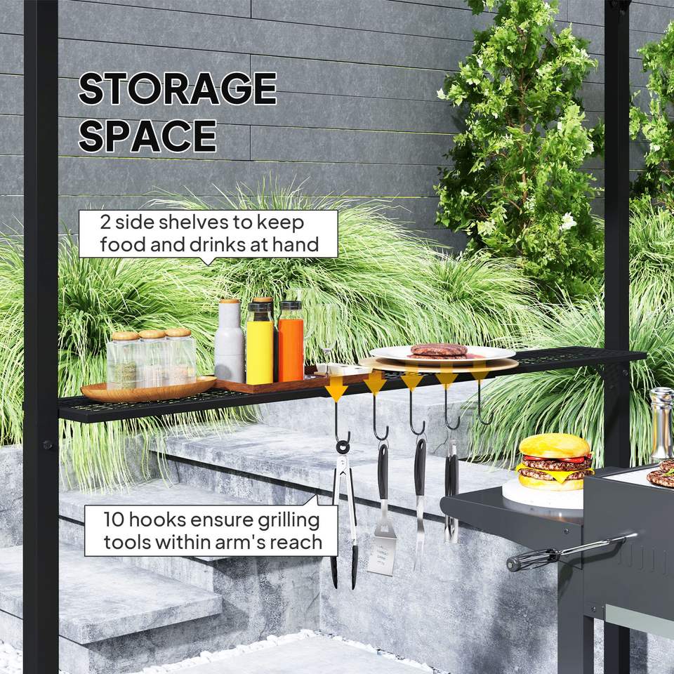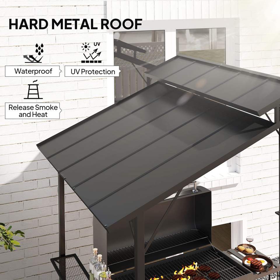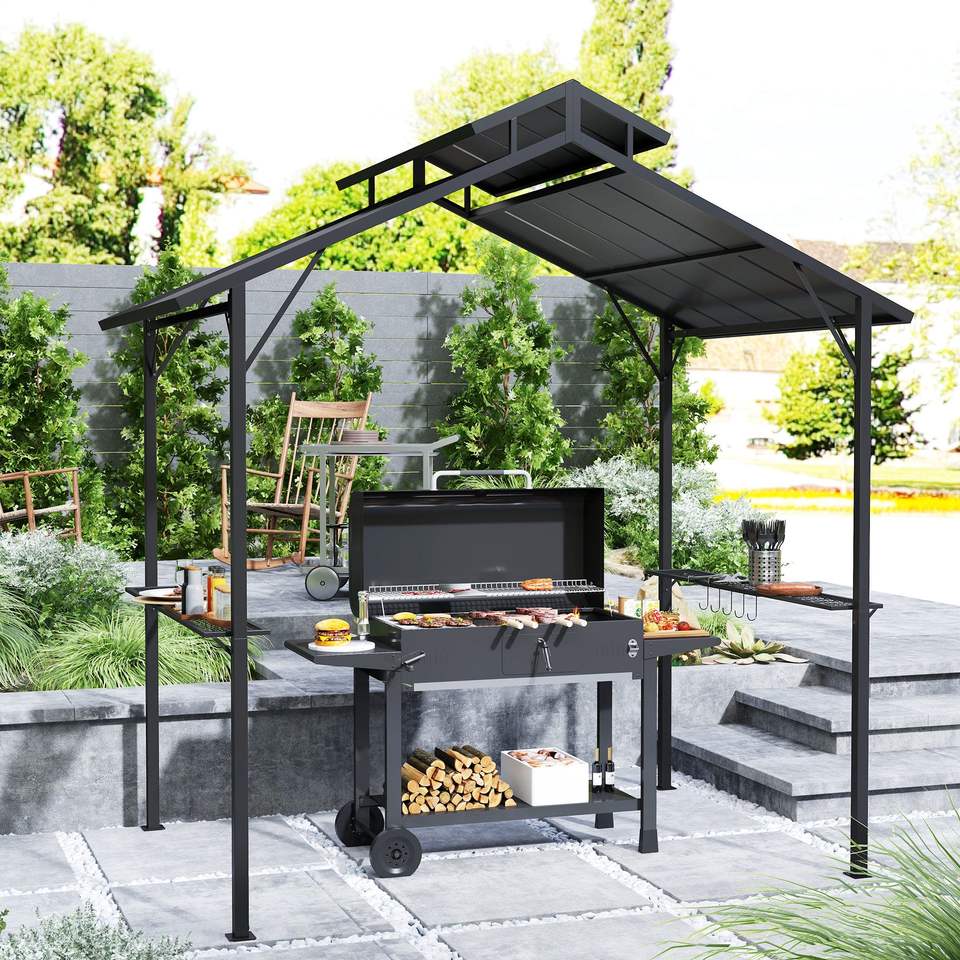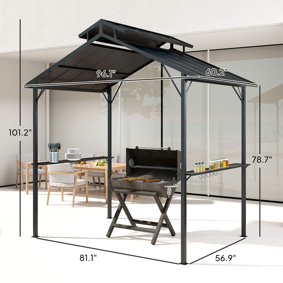 Gazebo con Tetto Rigido 8 x 5 Piedi, Doppio Tetto in Metallo, 2 Ripiani Laterali e 10 Ganci per Patio, Giardino, Prato, Terrazza