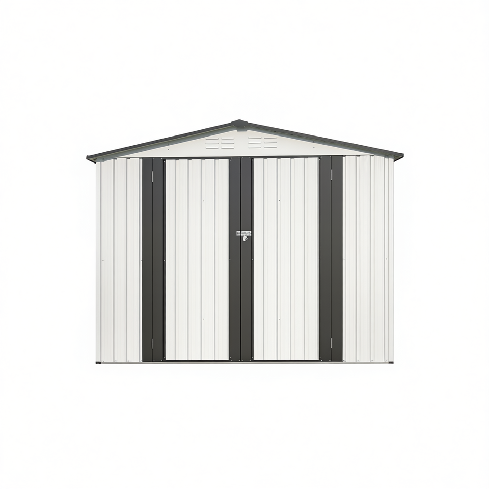Casetta da Giardino in Metallo Bianco 8 x 6 Piedi, Resistente alle Intemperie, con 2 Porte Chiudibili a Chiave per Deposito Attrezzi in Giardino e Cortile