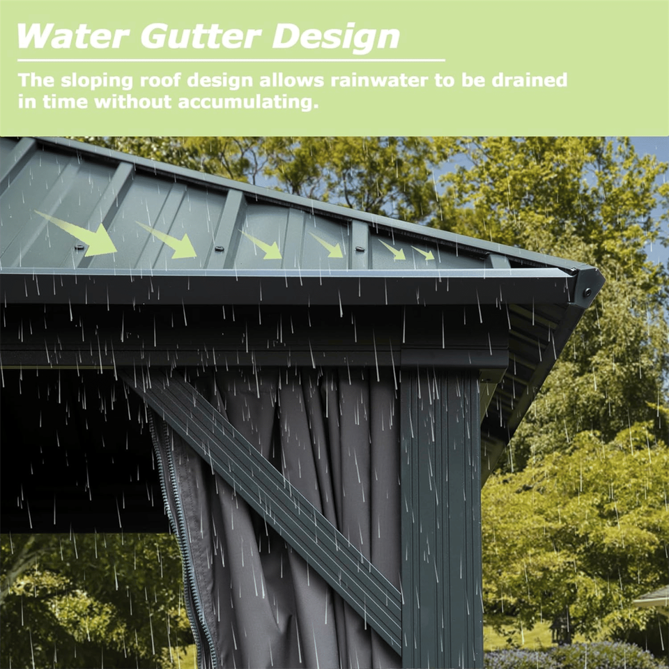 8' X 8' Grey Hardtop Aluminum Metal Gazebo Double Roof Galvanized Steel Canopy Curtain Netting Permanent Pavilion for Patio