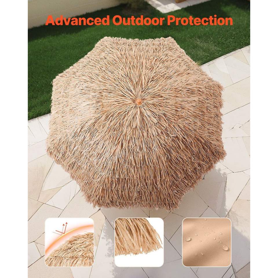 Ombrellone da spiaggia a bordo piscina con tetto di paglia da 8 piedi Tiki-elegante rifugio all'aperto