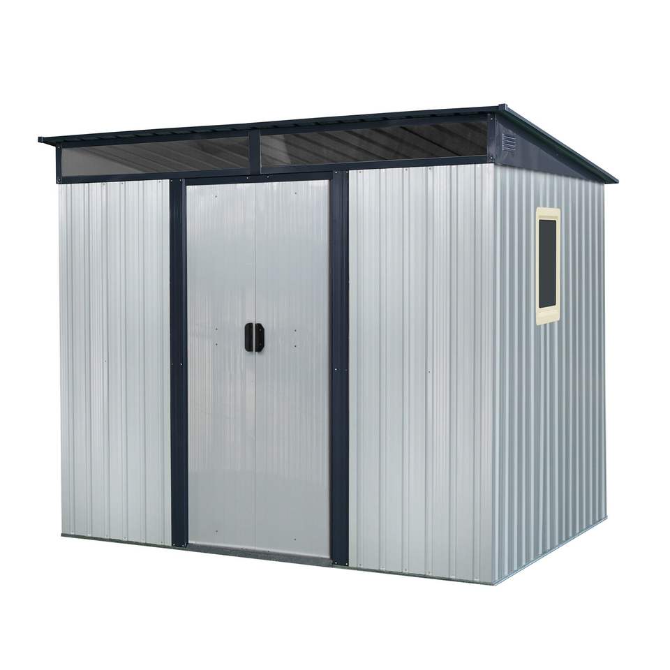 Casetta da Giardino in Metallo Bianca e Nera 2,4 m x 1,8 m con Finestra e Pannello Trasparente per Giardino o Prato