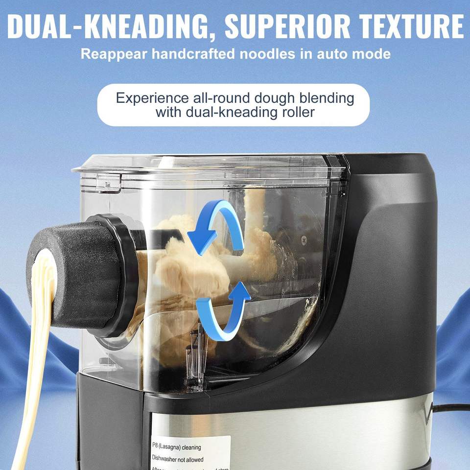 Macchina Elettrica per Pasta 8-in-1 150W, Automatica per Noodle e Pasta, 4 Modalità Intelligenti, Capacità 500g di Farina, 15 Forme Incluse