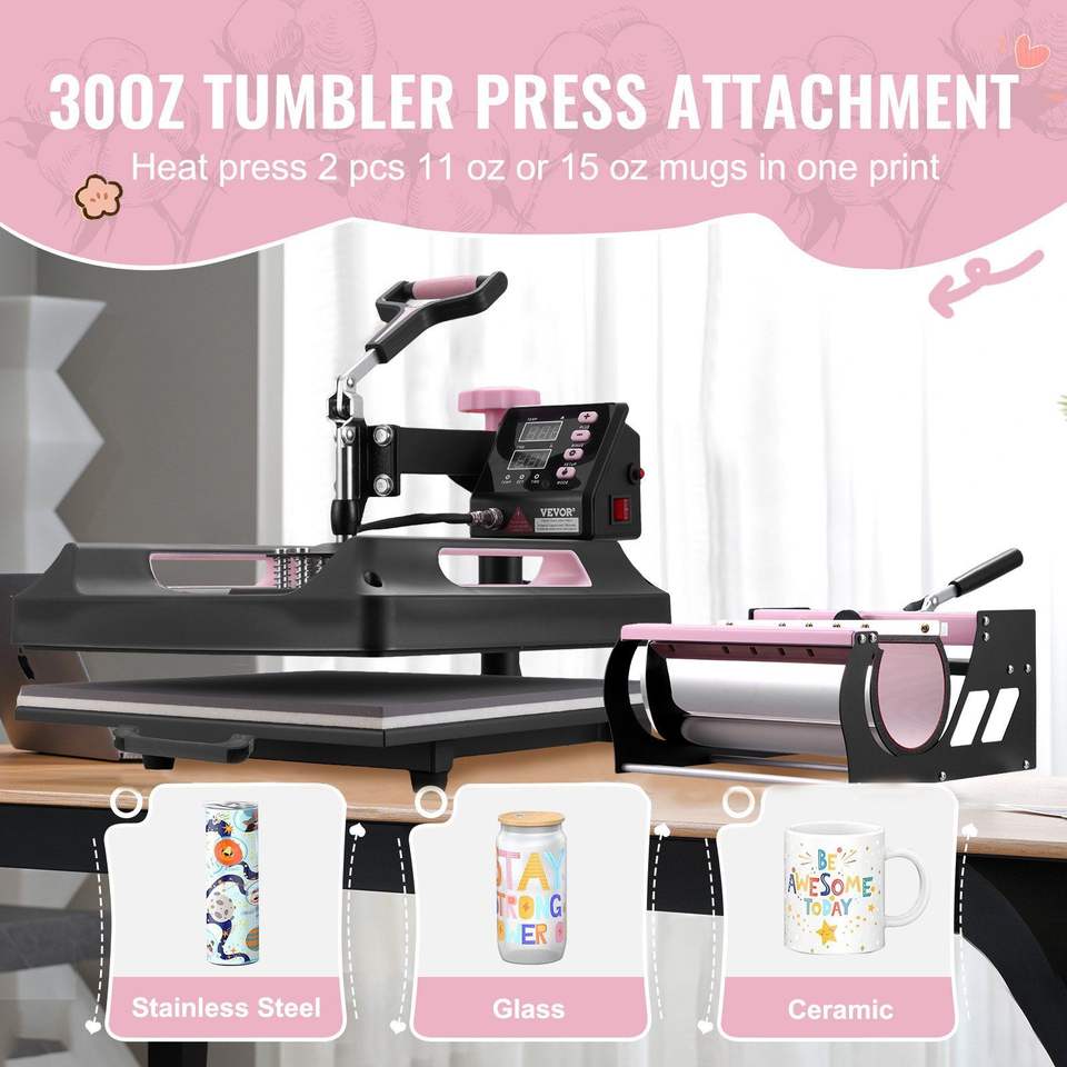 Pressa a Caldo Digitale 8 in 1 da 15 x 15 Pollici, Pressa per Tumbler da 30 oz con Rotazione a 360 Gradi per T-Shirt - Categoria Prodotti Digitali