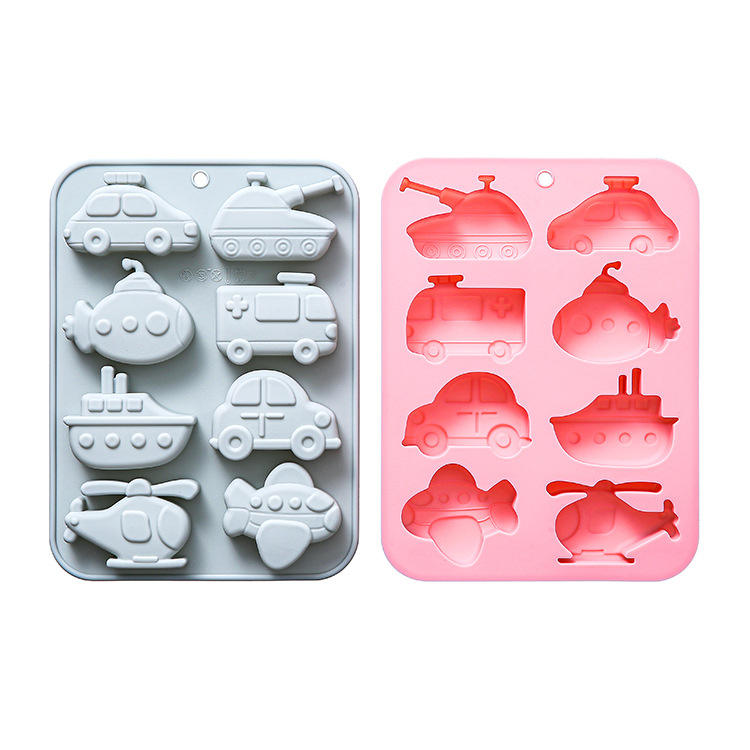 Stampo 8-in-1 con 8 diverse forme a tema veicoli, stampo in silicone per cioccolato, vassoio per cubetti di ghiaccio, stampo per torte, auto e mezzi di trasporto