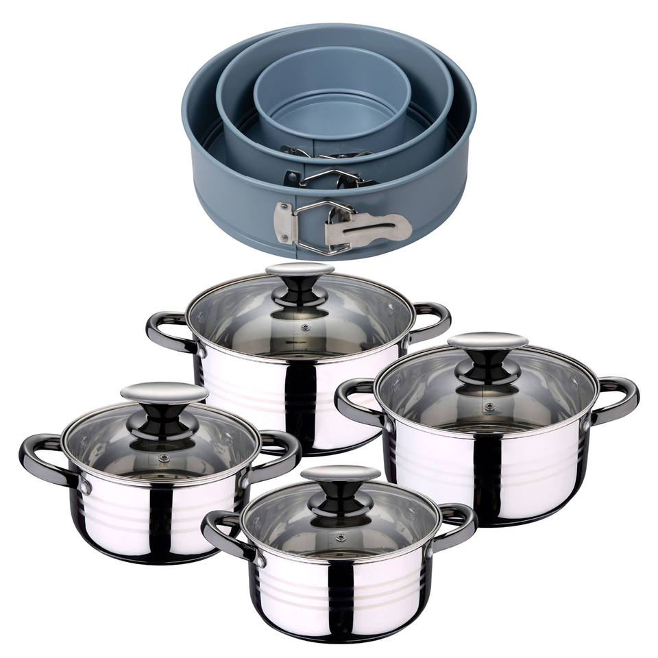 8-piece stainless steel cookware set suitable for induction hobs, San Ignacio Premium Collection + Set of 3 round baking pans