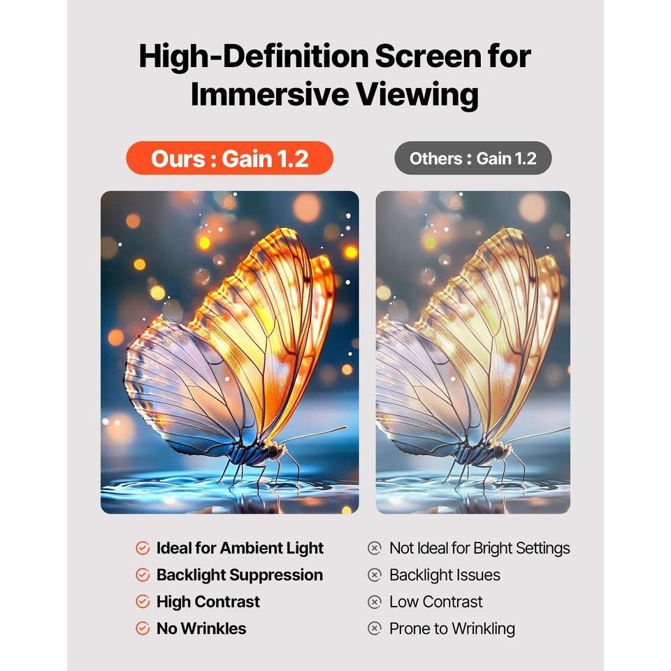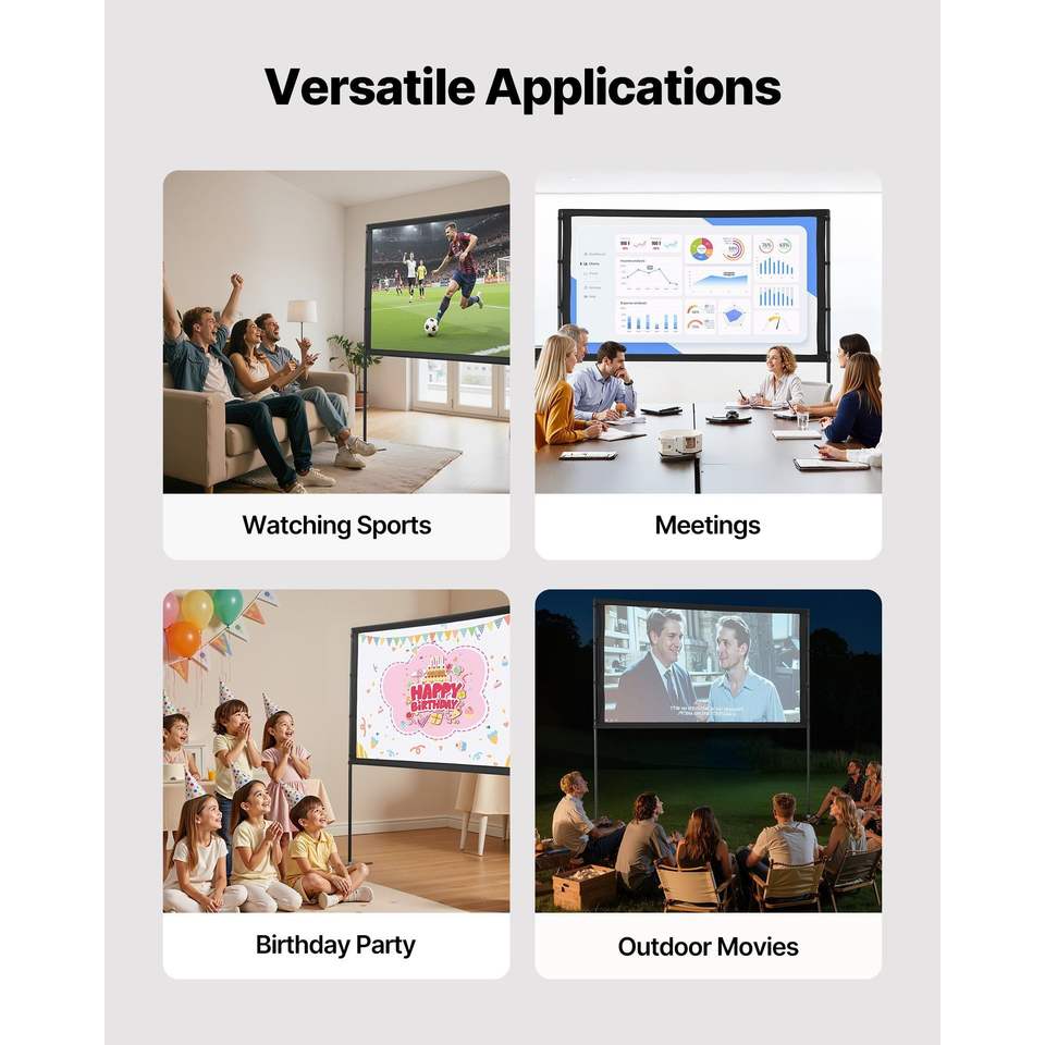 Schermo per Proiettore Portatile da 80 Pollici, Angolo di Visione 160 Gradi, 16:9 4K HD, Senza Pieghe, per Interni ed Esterni, Schermi di Proiezione di Alta Qualità
