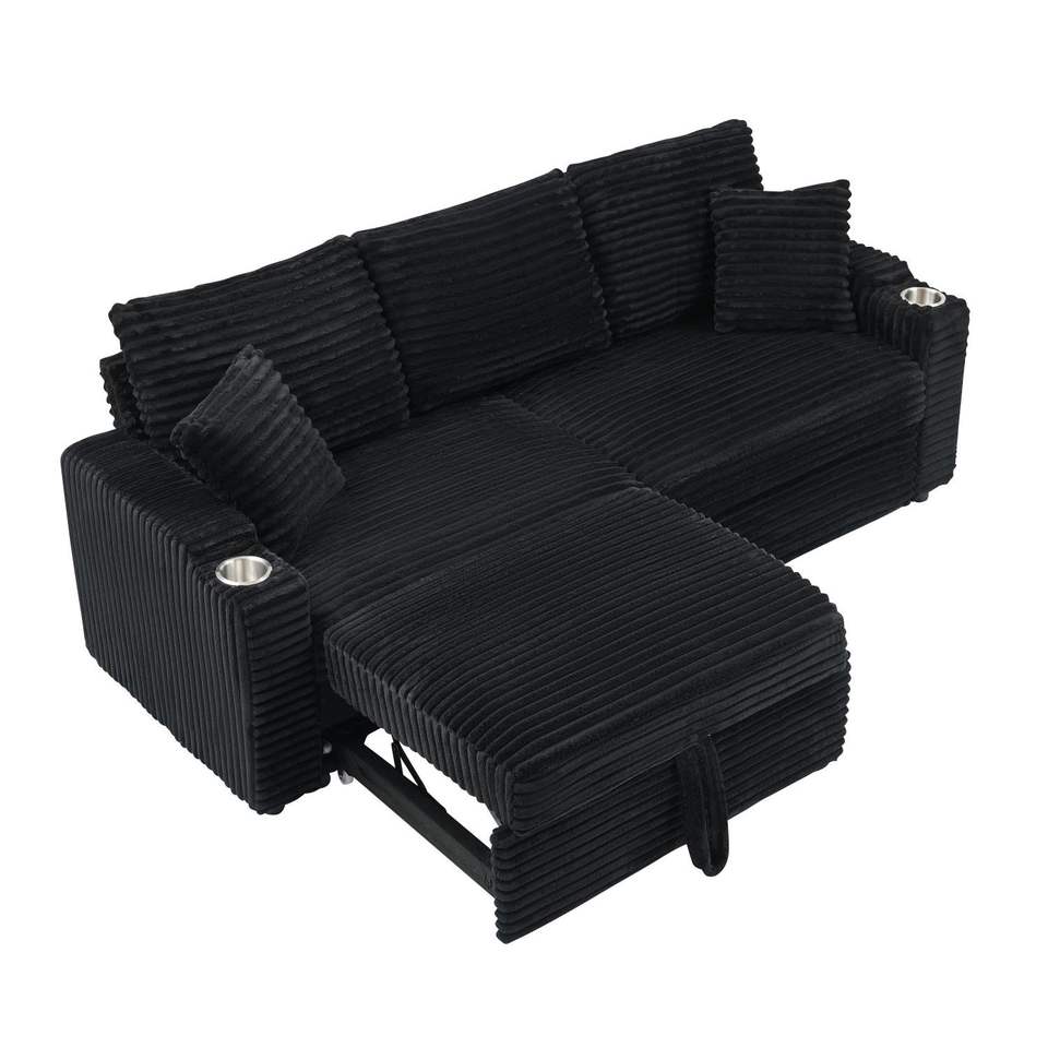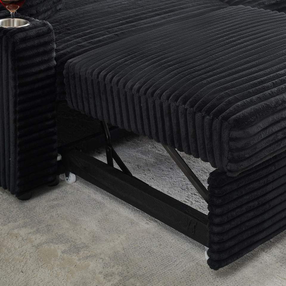 Divano in tessuto di velluto a coste nero pieghevole due in uno da 80 pollici con cuscino portabicchieri con funzione nascosta per adattarsi facilmente allo spazio del soggiorno