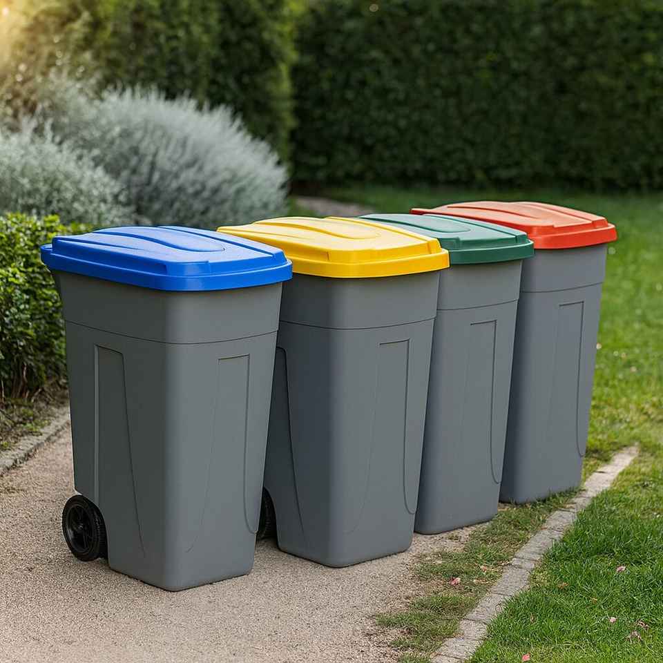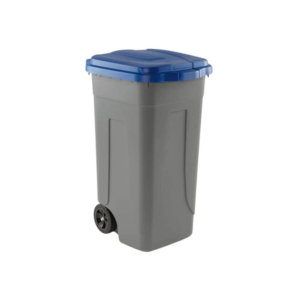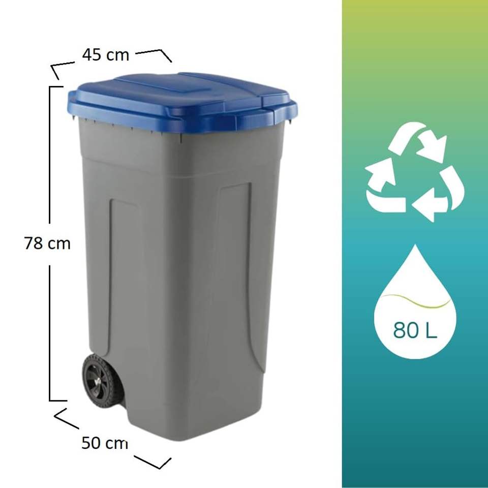 80-Litre Outdoor Waste Bin with Wheels Resistant Plastic Lid Clip and Bag Holder Available in Blue Green Yellow