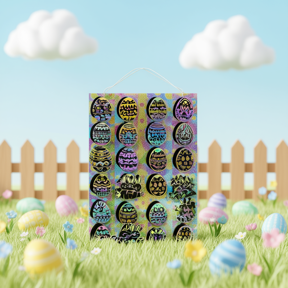 Kit Pittura a Graffio Pasquale 80 Fogli con Penna in Bambù, Uova Colorate, Coniglietto e Carota - Gadget per Feste per Bambini 5-7 Anni