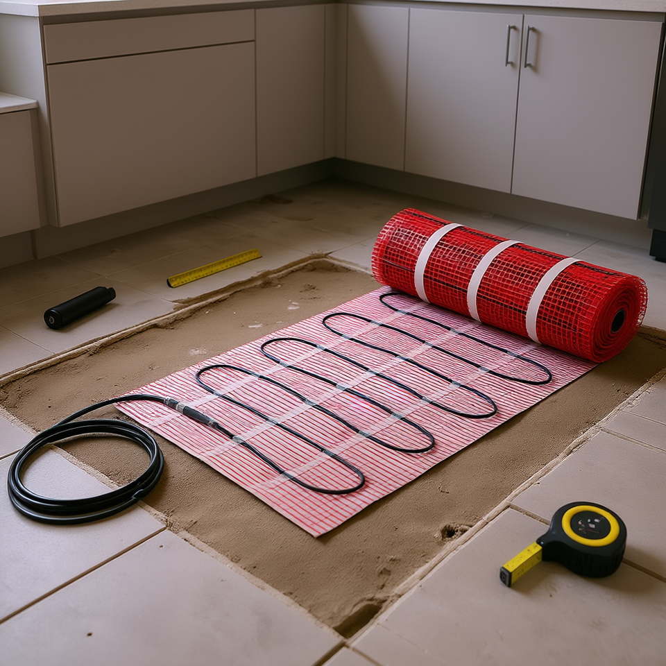 Tappetino Riscaldante per Pavimenti 80 Piedi Quadrati Autoadesivo con Termostato per Riscaldamento a Pavimento