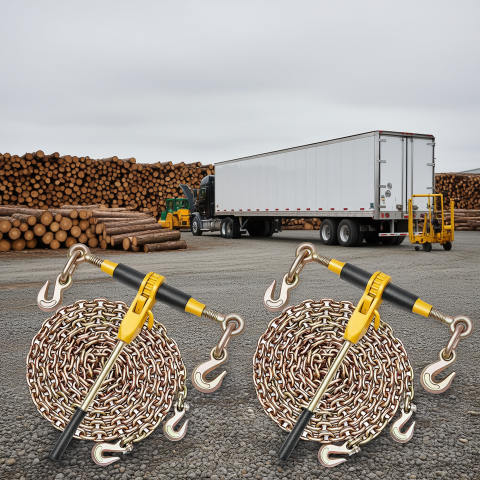 Catene di ancoraggio a cricchetto 5/16 x 14 piedi G80, set di catene metalliche per traino, rimorchio e trasporto legname