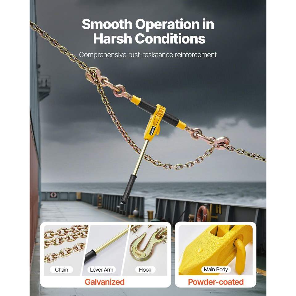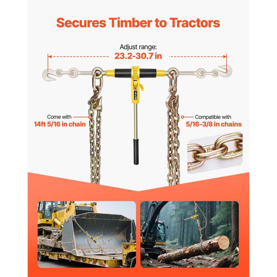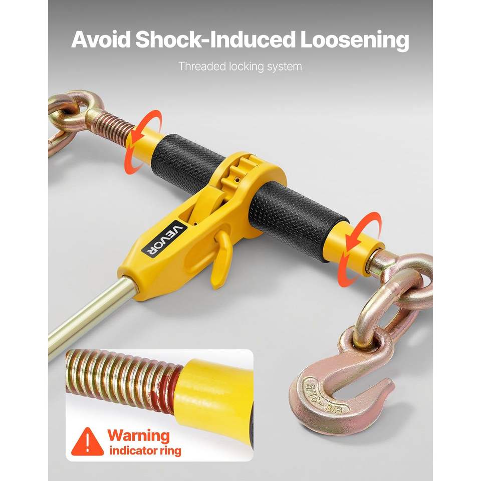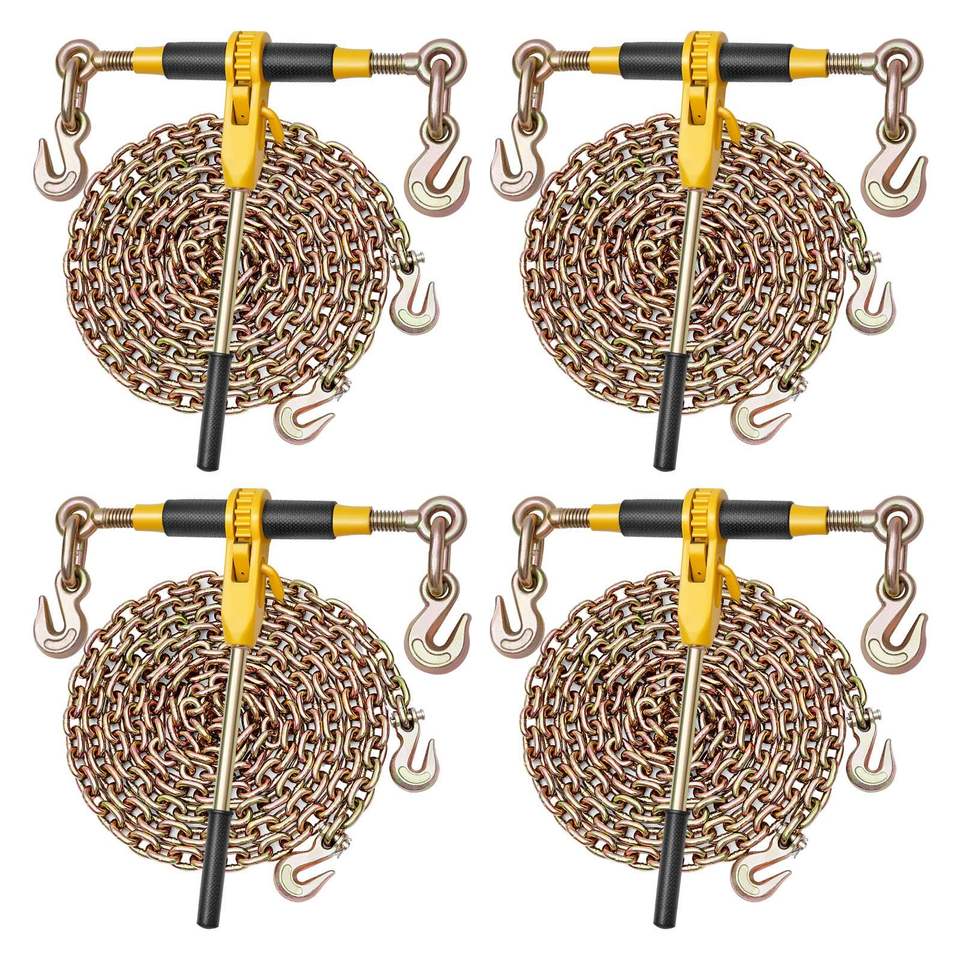 Set di Cinghie a Cricchetto con Catene G80 da 8000 Libbre di Carico, 5/16 X 12,8 Piedi, con Fibbia a D per Fissaggio Sicuro, Uso Intensivo