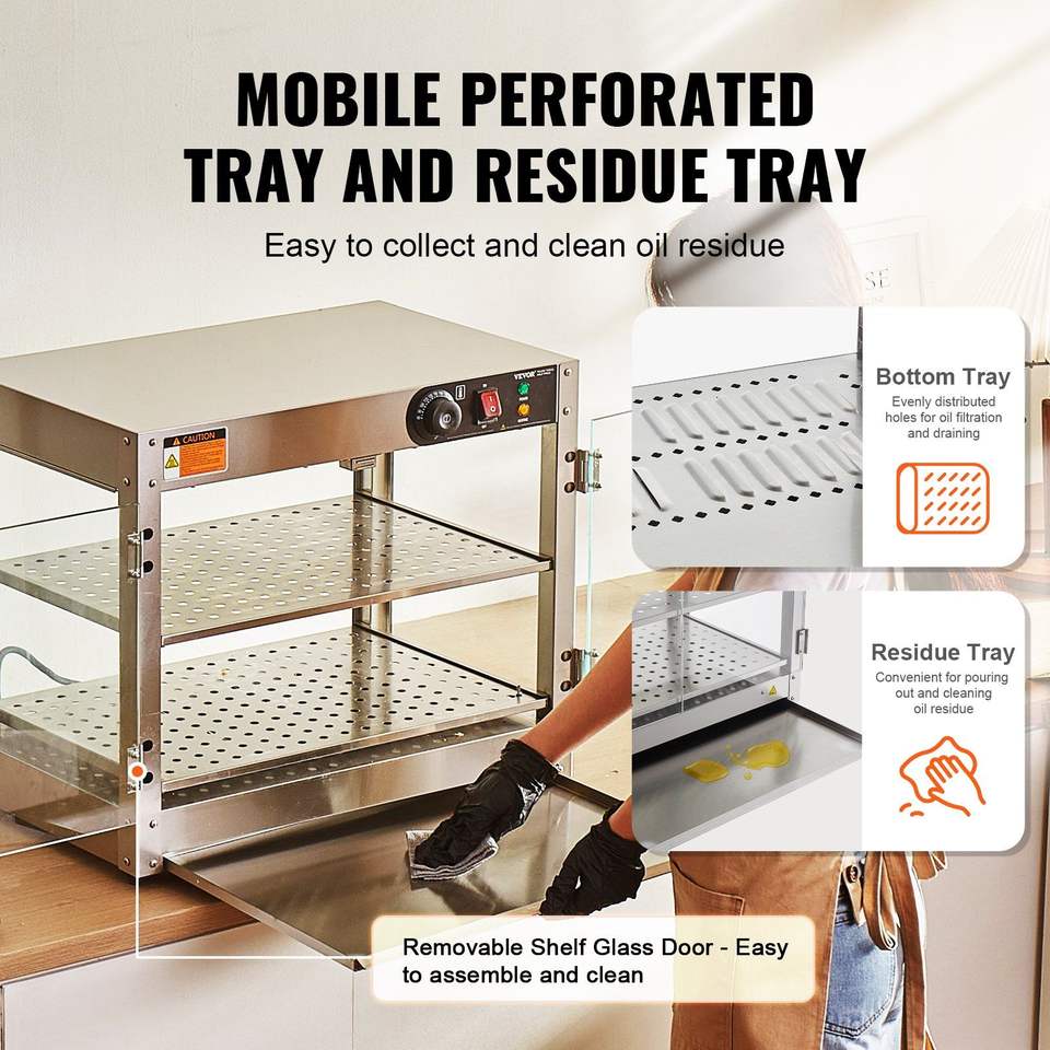 Scaldavivande Commerciale a 2 Livelli da 800W con Temperatura Controllata tra 86-185°F, Migliora la Presentazione degli Alimenti con Illuminazione