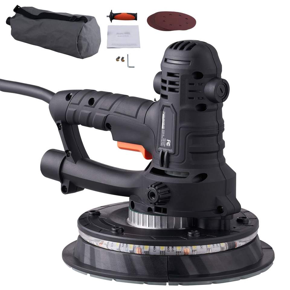 Levigatrice Elettrica per Cartongesso 800W con 12 Dischi Abrasivi, Velocità Variabile 1200-2300 RPM, Aspirazione Automatica della Polvere per Levigatura Pareti