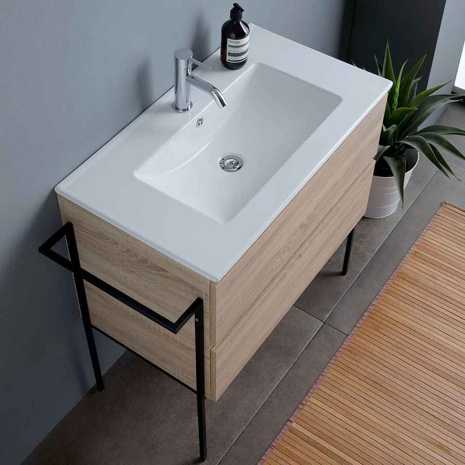 Mobile da Bagno 80CM con 2 Cassetti, Lavabo, Specchio 80x60 e 2 Portasciugamani Belize