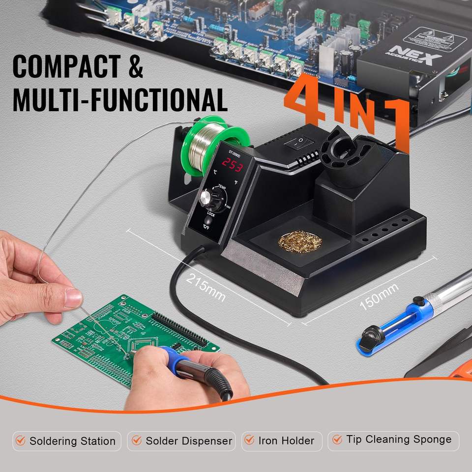 Stazione Saldante Digitale da 80W con Display, Kit con 5 Punte per Saldatura, 30g di Filo per Saldatura e Pinzetta Aspirasoldi Inclusa