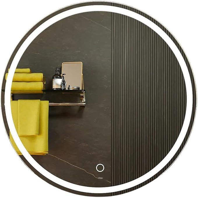 Specchio da Parete LED Rotondo Nero da 80cm, Specchio da Bagno Moderno di Lusso con Interruttore Touch IP44 per Uso in Soggiorno
