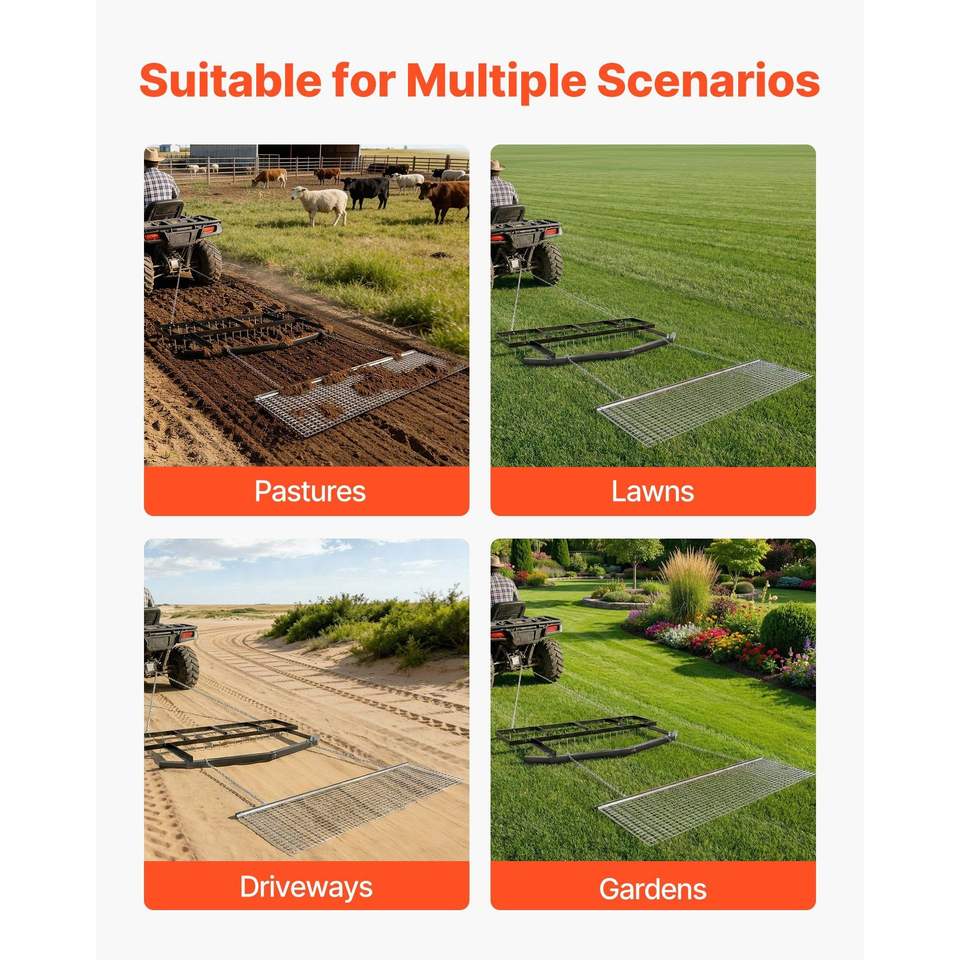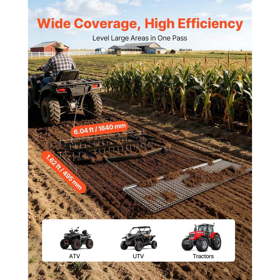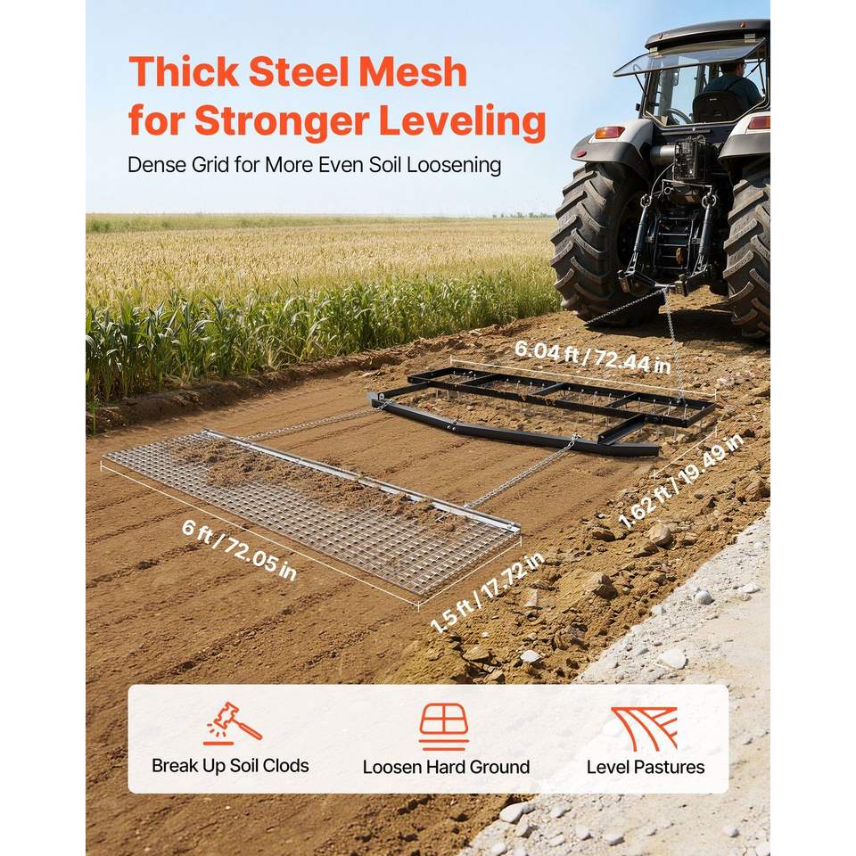 Erpice a Catena per Rimorchio, Capacità di Carico 80 libbre, Larghezza Regolabile 6 piedi, Robusto, per Vialetti, Prati e Fattorie