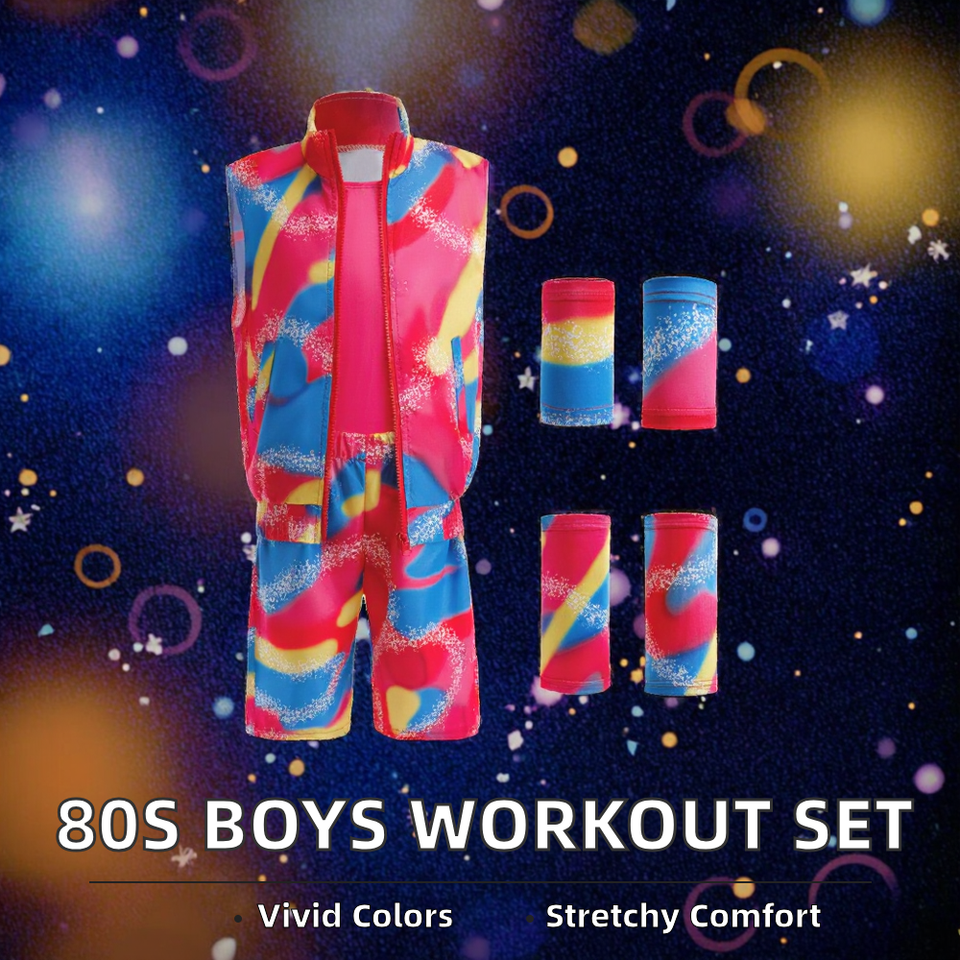 80s Boys Children Stage Dance Workout Costume Halloween Cosplay Couples Outfit Set Spandex/Nylon