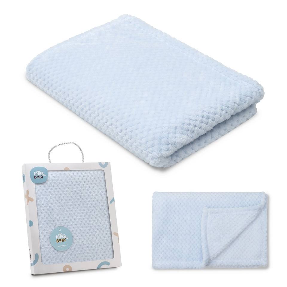Coperta in Maglia Blu con Motivo a Popcorn 80x110 Cm