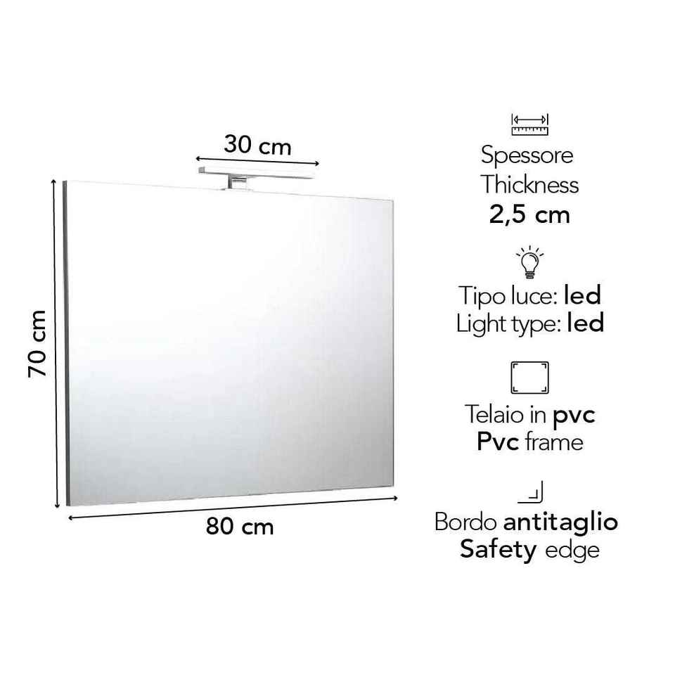 Specchio da Bagno Moderno a LED Reversibile 80x70 cm con Cornice in Alluminio Resistente all'Acqua