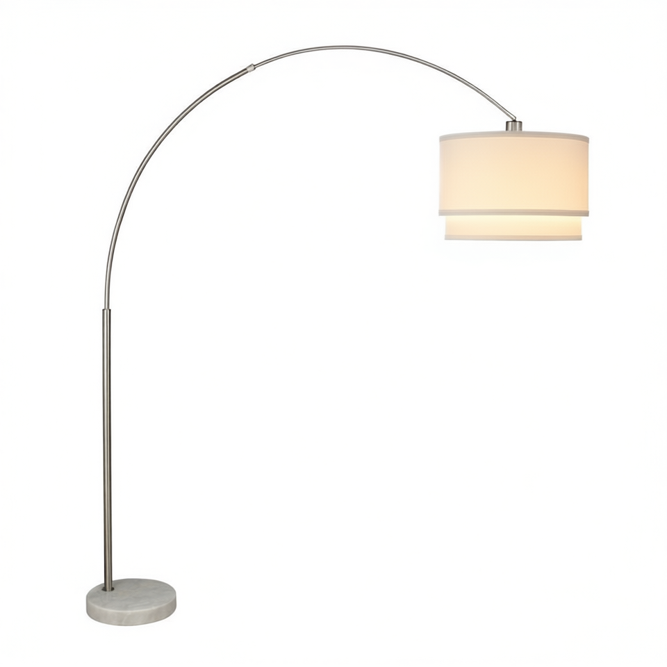 Lampada da Terra a Doppia Paralume 81H con Base in Marmo e Paralume a Tamburo LED, Elegante Arredo per la Casa