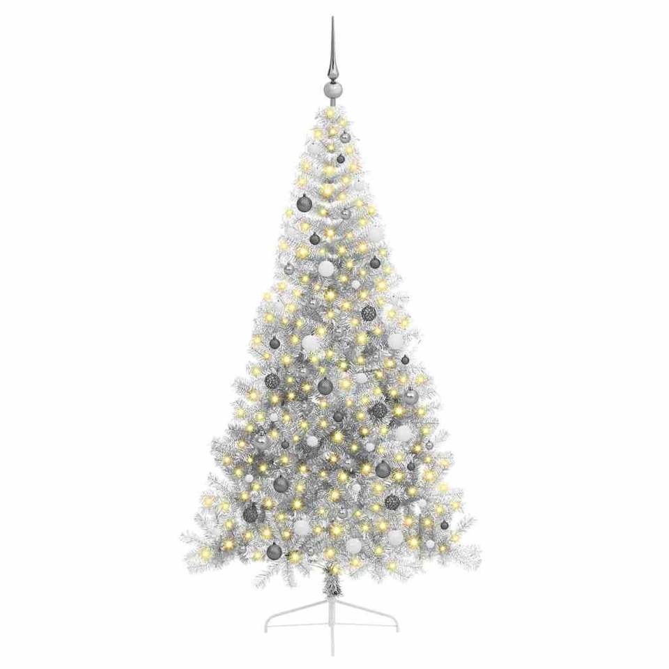 Albero di Natale Artificiale Pre-Illuminato in PET da 210 cm, Alberi di Natale Argentati