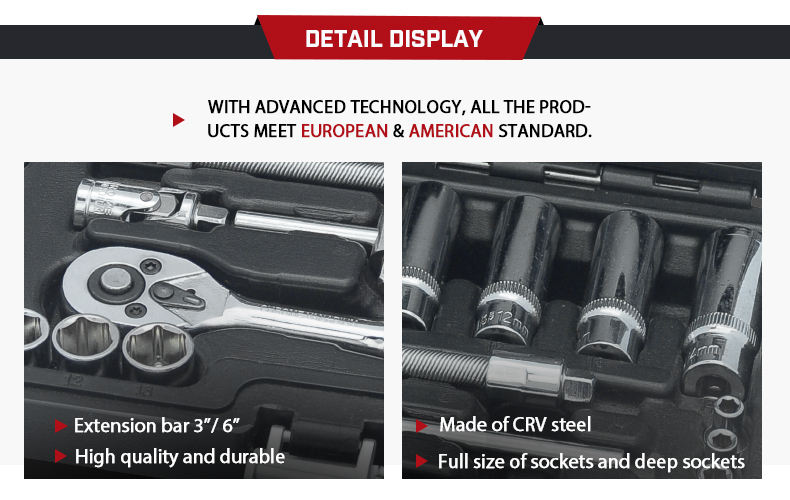 Combinazione, 13 PEZZI - BOCCHETTE DA 1/4", 17PCS-1/4" BOCCHETTA PER INSERTI, 1PC-1/4" MANICO A CRICCHETTO, 1PC-1/4" MANICO ROTANTE, 1PC-1/4" BARRA A T SCORREVOLE, 2PCS-1/4" BARRETA DI ESTENSIONE, 1PC-1/4" BARRA DI ESTENSIONE FLESSIBILE, 1PC-1/4" GIUNTO UNIVERSALE, 15 PEZZI - Punta da 5/16", 12 PEZZI - BOCCHETTA DA 1/2", 2PCS-1/2" BOCCHETTA PER CANDELLE, 1PC-1/2" MANICO A CRICCHETTO, 2PCS-1/2" BARRA DI ESTENSIONE, 1PC-1/2" GIUNTO UNIVERSALE, 1PC-1/4" (F) x 1/4" (F) PORTA INSERTI, Chiave a brugola 8 pezzi, 4 Chiavi Pivotanti, 11PCS - CHIAVE COMBINATA