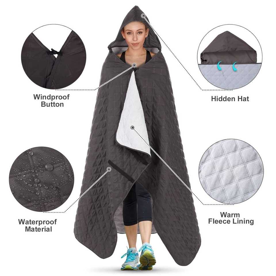 Pile con cappuccio impermeabile da campeggio da 82 "x55" coperta di sopravvivenza all'aperto con funzione antivento