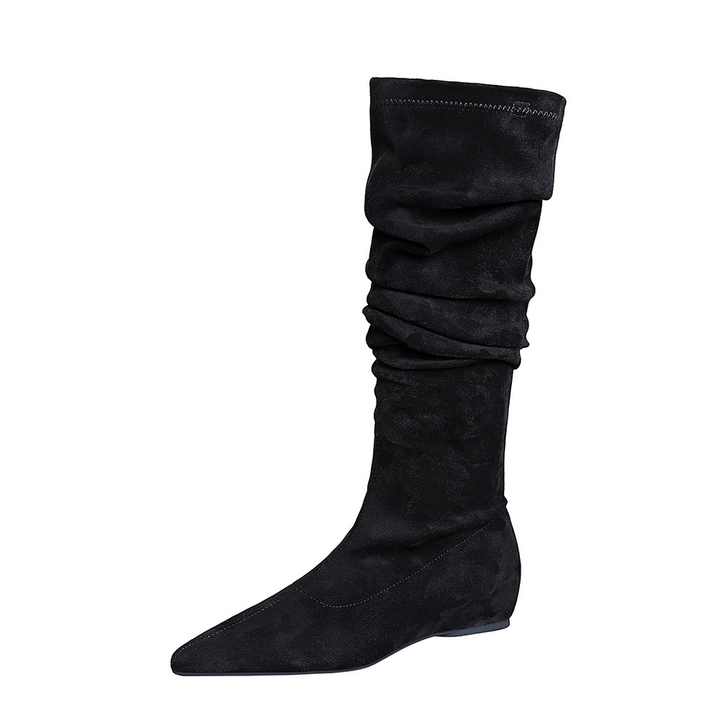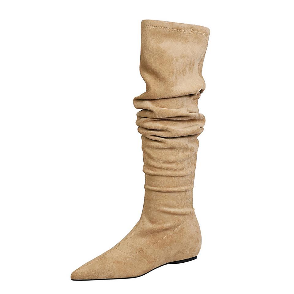 Stivali Invernali 8288 in Camoscio Sopra il Ginocchio da Donna con Cerniera Laterale, Plissettati, Svasati, Snellenti, Tacco Medio, Stivali da Cavaliere Alti