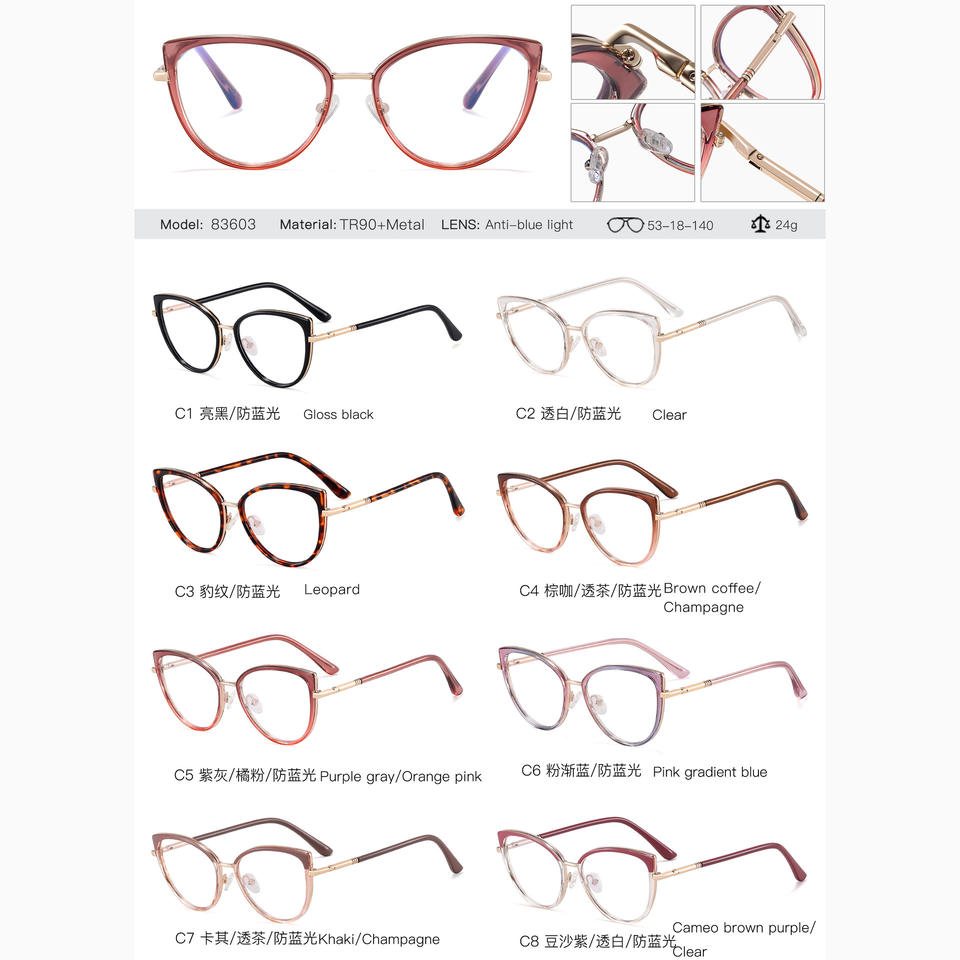 83603 Nuova Montatura Occhiali da Vista Donna in TR90 Stile Cat Eye con Protezione Anti-UV e Anti-Luce Blu
