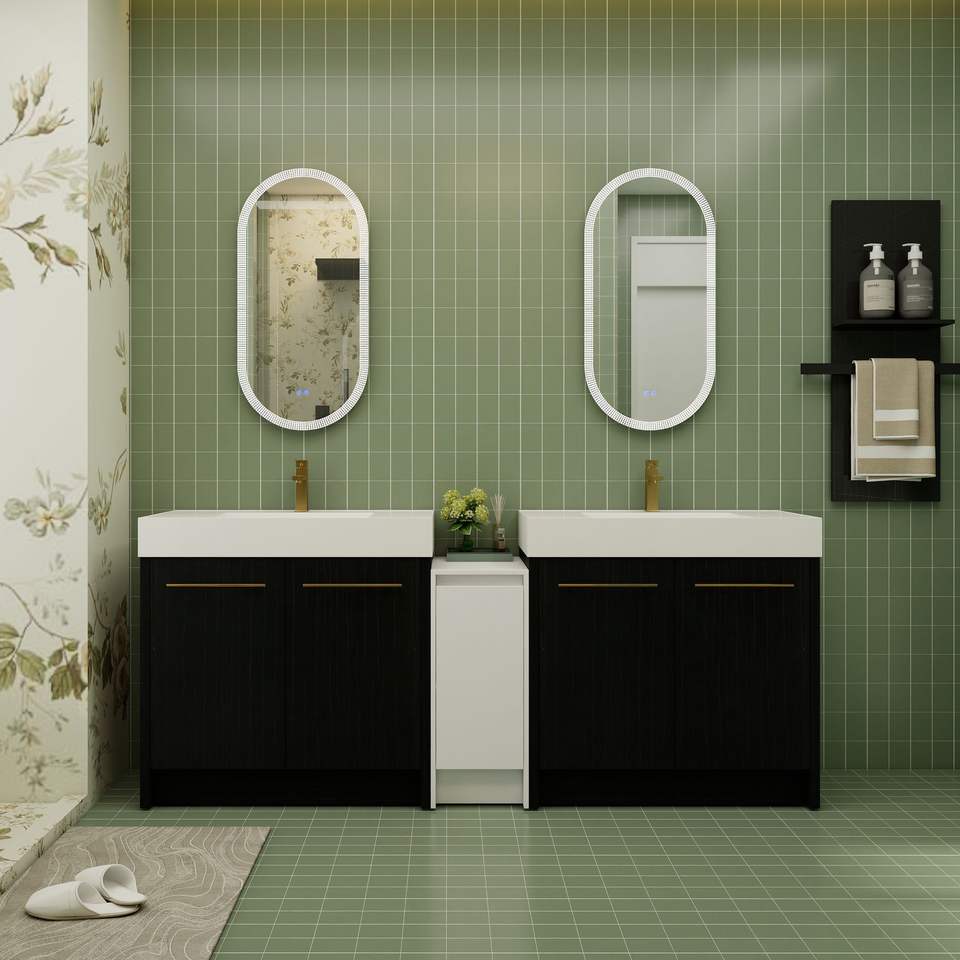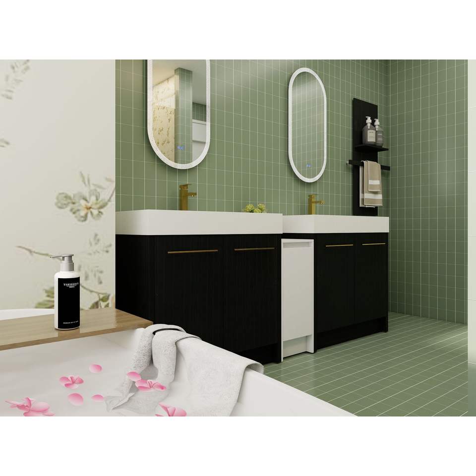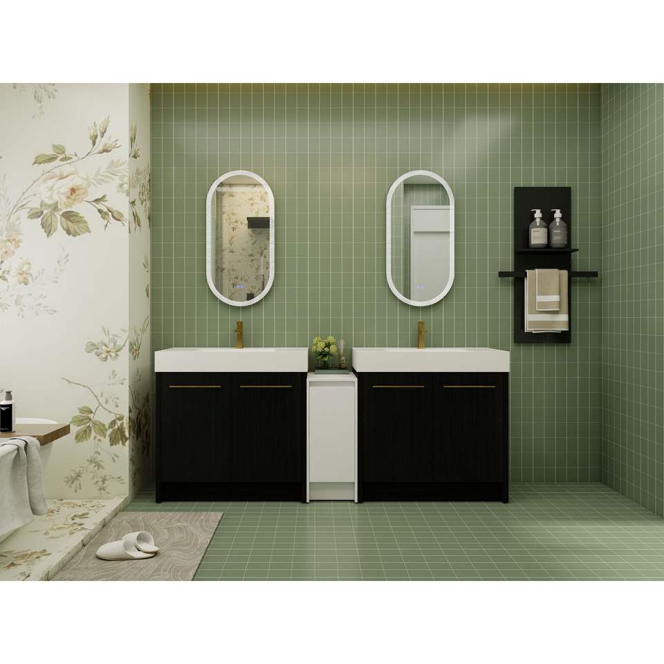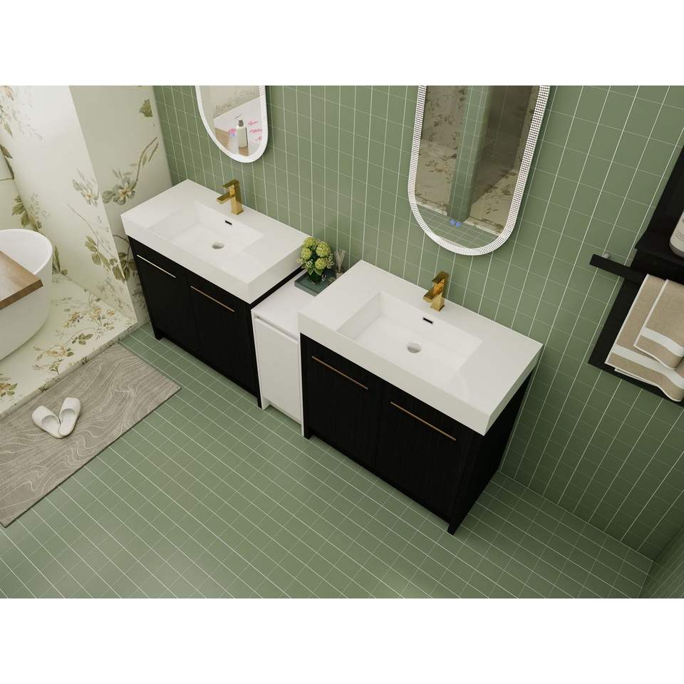 Mobile Bagno Freestanding da 84 Pollici con Lavabo in Resina, Armadietti Contenitori e Ante con Chiusura Ammortizzata 09236*2+0312 - Combinazione per Bagni Moderni